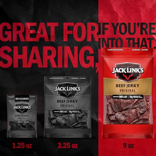 Jack Link's Beef Jerky, Original, Large Jerky Bags - Flavorful Meat Snacks, Ready to Eat Protein Snacks with 10g of Protein per Serving, Made with 100% Beef - 9 Oz. (Pack of 2)