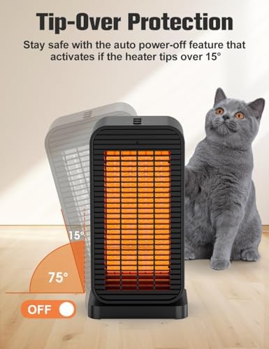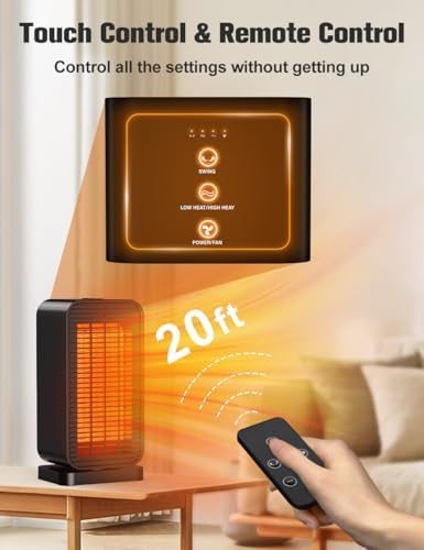 BALKO Space Heater, Portable Electric Heaters for Indoor Use with Thermostat, Fan Mode, Remote Control, Tip-over & Overheat Protection, 1500W PTC Ceramic Safety Heaters for Large Room\/Office\/Bed