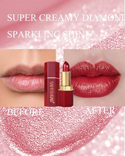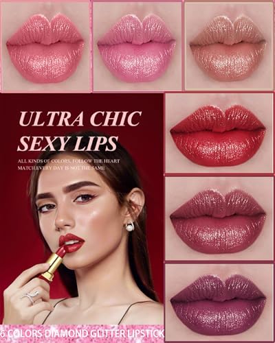 Glitter Lipstick Sets for Women Long Lasting,Light to Dark Shimmer Lipstick 24 Hour Waterproof Matte Lip Gloss Nude Pink Rose Red Brown Plum Color High Pigmented Sparkling Shiny Lip Stain Makeup Gift