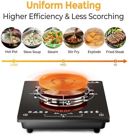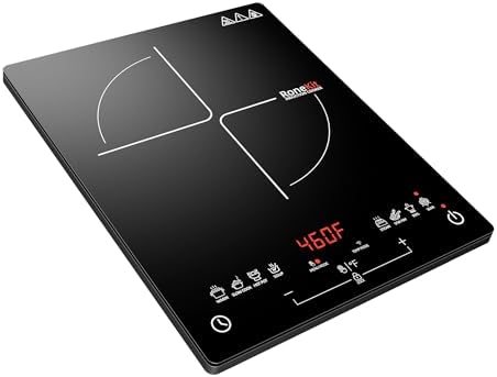 RoneKit Induction Cooktop 1800W Portable Electric Stove Countertop, 8 Preset Functions & Temp Settings, 2 Cooking Modes, Timer, Child Lock for Tiny Kitchen, Apartment, Camping, RV Countertop Burne
