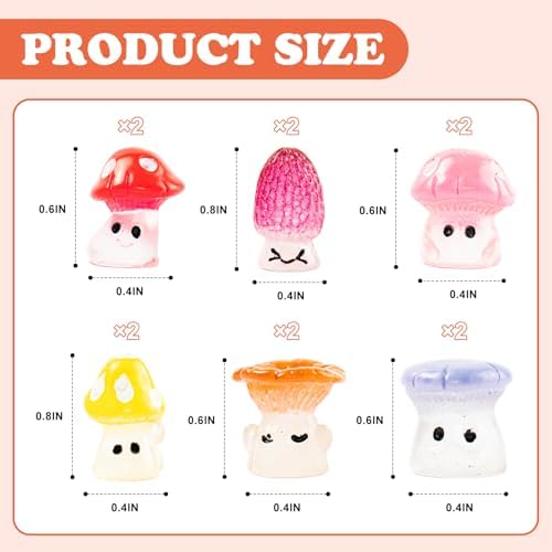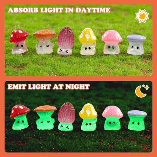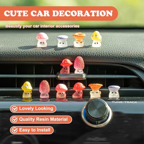 Rislobx 12PCS Luminous Mushroom Car Dashboard Decorations, Cute Mushroom Decor for Women Rear View Mirror Ornament Cute Car Decor Interior Dashboard Accessories for Home Office