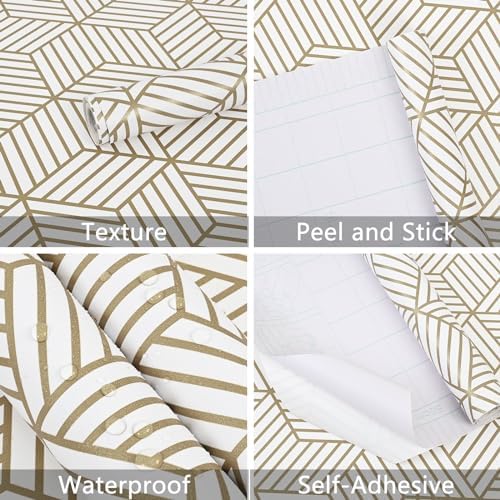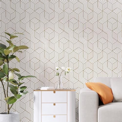 WENMER 17.71" x 118" Geometric Hexagon Wallpaper Peel and Stick Wallpaper Removable Self Adhesive Wall Paper Vinyl Film Shelf Paper & Drawer Liner Roll for Home Use