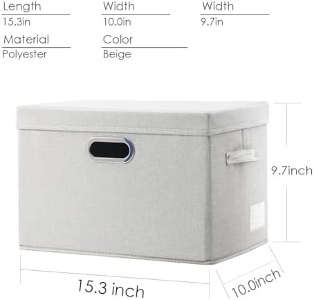 PRANDOM Collapsible Storage Bin with Lid [3-Pack] Fabric Foldable Storage Box Organizer Container Basket Cube with Cover for Home Bedroom Closet Office Beige(15.3x10x9.7)