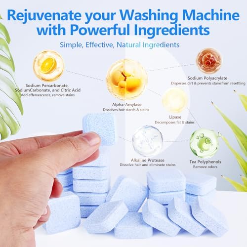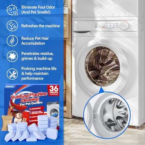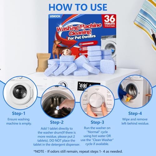 Washing Machine Cleaner-36Pack-18 Month Supply,Washer Machine Cleaner Tablets Formulated For Pet Owners,Easy Pet Hair Remover for Laundry,Compatible with HE, Top & Front Load Washer.Septic Safe
