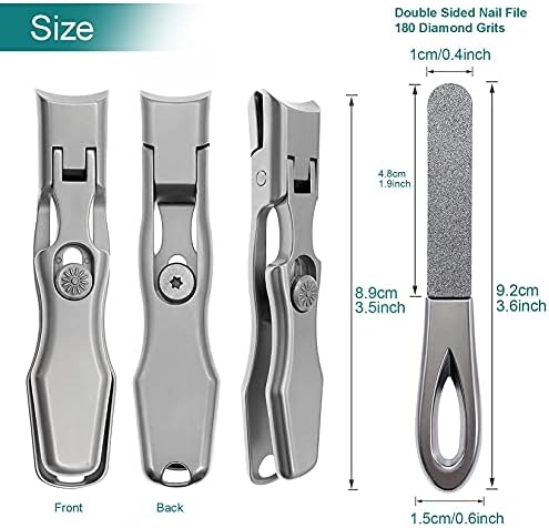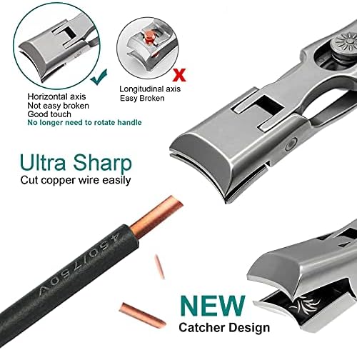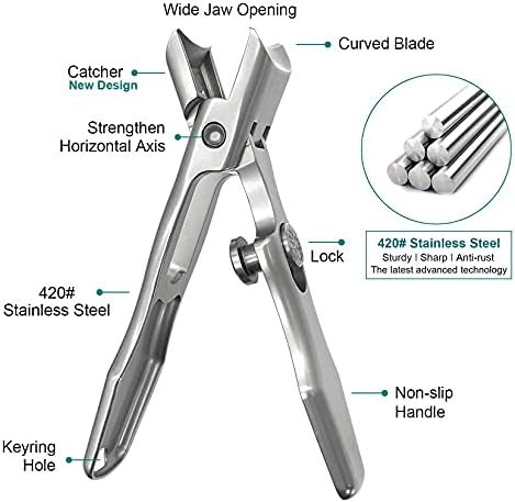 VOGARB Nail Clippers for Men Thick Nails, Large Wide Jaw Opening Long Handle Heavy Duty Ultra Sharp Toe Nail Clippers with Catcher for Seniors,Adult,Women (Silver with File)