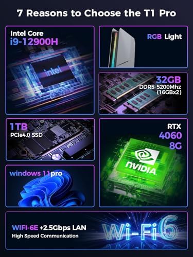 TOPGRO T1 Mini Gaming PC Core i9-12900H\/RTX4060 8GB GDDR6,Mini Desktop Gaming Computer(14C\/20T,Up to 5.0GHz)32GB DDR5-5200mhz,1TB PCIe 4.0 SSD\/RGB Light\/WiFi 6E\/BT 5.3\/HDMI2.0\/USB-C\/4K@60Hz\/W