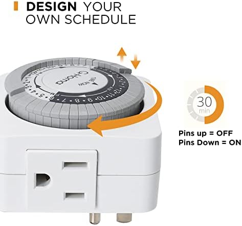 G-Homa Timers for Electrical Outlets, 24 Hour Indoor Plug-in Mechanical Timer Mini, 30 Minute Intervals, 3-Prong, Daily On\/Off Cycle, for Lights, Lamps (4-Pack, ETL Listed)