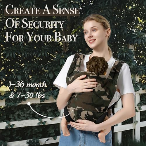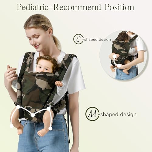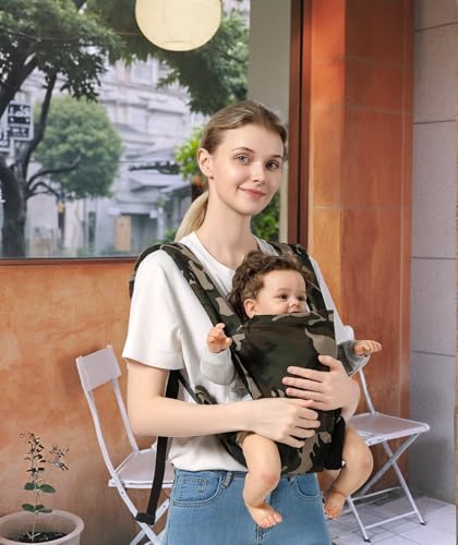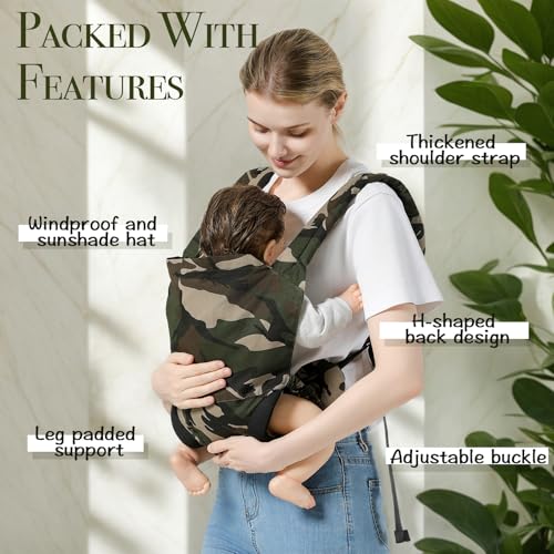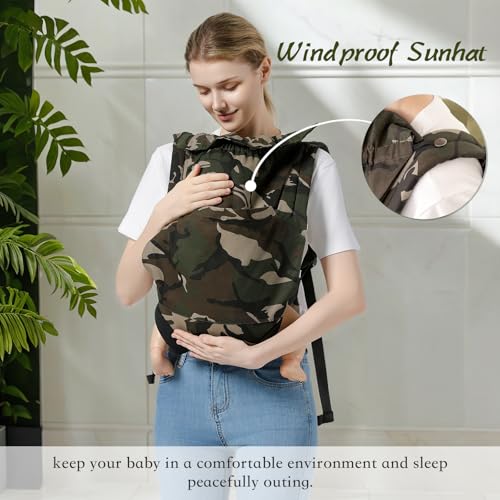 MISSWISDOM Baby Carrier Newborn to Toddler(7-30lbs), Stylish Baby Hip Carrier with Adjustable Strap, Easy to Wear Infant Holder Carrier with Windproof Cap, One Size Fits All, Camouflage