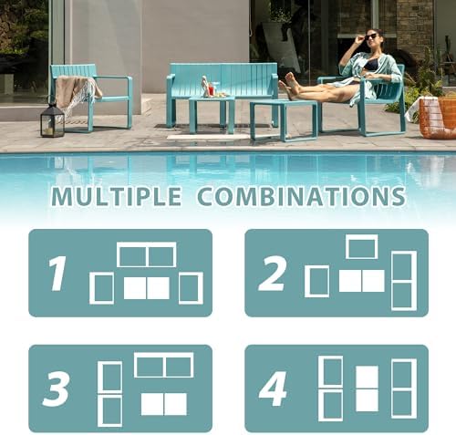 Werph Patio Furniture Set, 4 Pieces Outdoor Furniture Patio Table and Chairs Set, Patio Chairs Set of 4 Patio Conversation Sets Balcony Bistro Set Porch Furniture for Lawn Garden Poolside