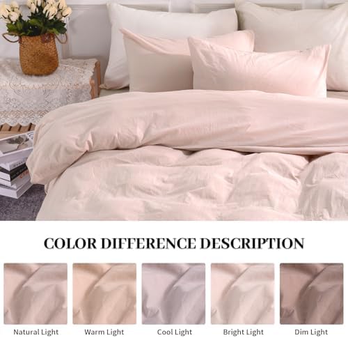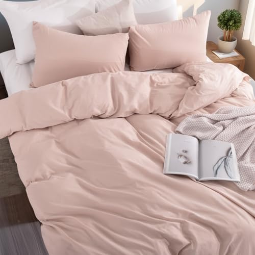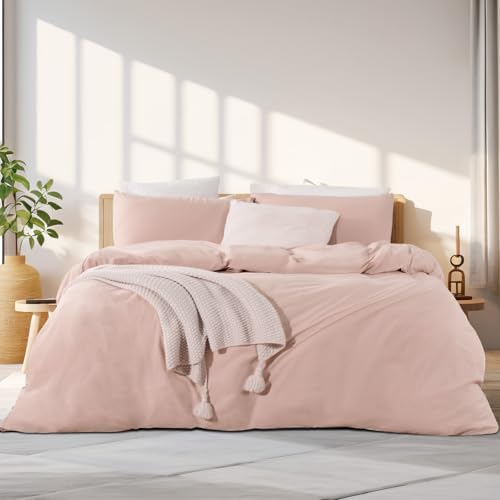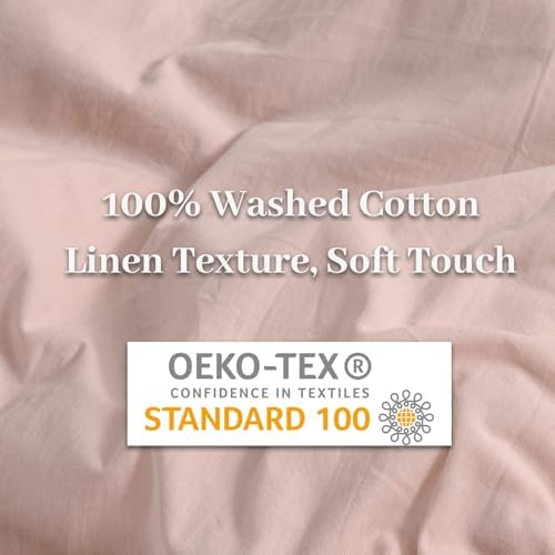 NEXHOME PRO Duvet Cover Set Kids Twin Size Linen Feel Textured Organic Natural 100% Washed Cotton Duvet Cover 2 Pieces Bedding Set with Zipper Closure, Breathable, Dusty Pink(No Comforter)