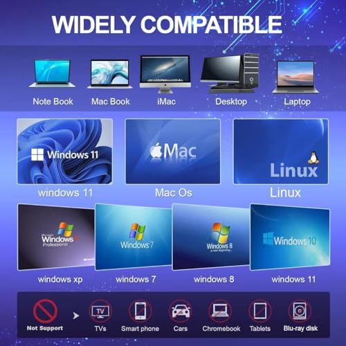 External CD\/DVD Drive for Laptop, DVD Player for Laptop, 8 in 1 USB 3.0 Ultra-Slim Portable, CD Burner External Disk Drive Optical Compatible with Desktop Mac,Windows 11\/10\/8\/7 Linux