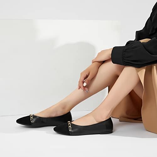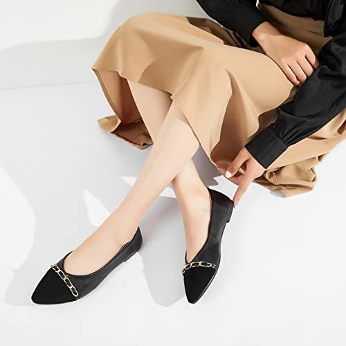 BABUDOG Women's Black Flats Shoes,White Dress Shoes for Women,Crimping Faux Suede Ballet Flats Comfortable
