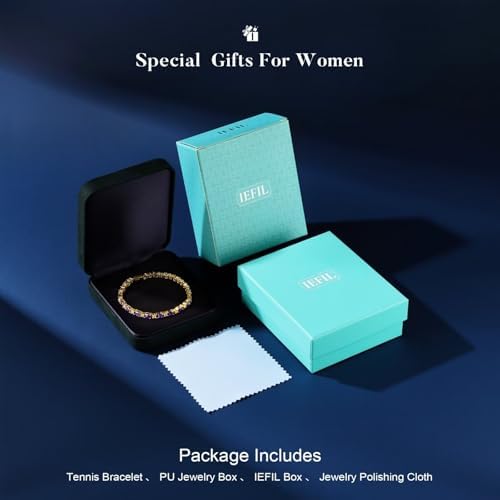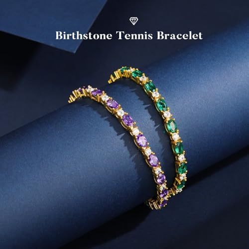 Iefil 14K 镀金网球手链 女式 - 925 纯银诞生石手链,女士周年纪念生日礼物,送给女士她的珠宝礼品,16.5 厘米 - 17.78 厘米