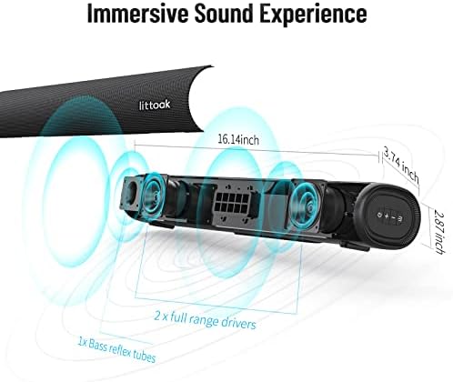 LITTOAK Sound Bar for TV, Bluetooth 5.0 Soundbar, 50 Watt 16 Inch Soundbars for Home Audio, Gaming, Projectors, TV Speakers Supports HDMI ARC\/Optical\/RCA\/USB\/AUX\/Coax in Connection, Wall Mountabl