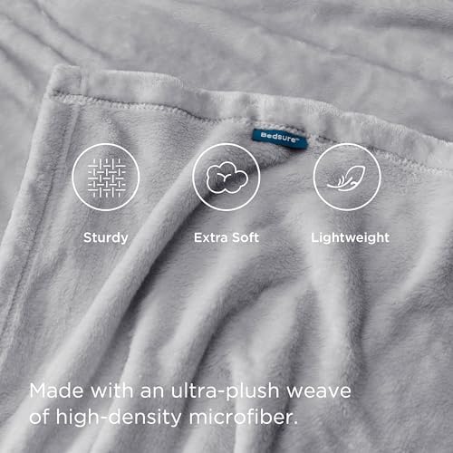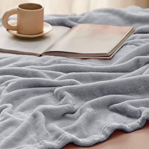 Bedsure Fleece Blanket Twin Size Light Grey - 300GSM Lightweight Plush Fuzzy Cozy Soft Warm Blanket for Bed, Sofa, Couch, Travel, Camping, 60x80 inches